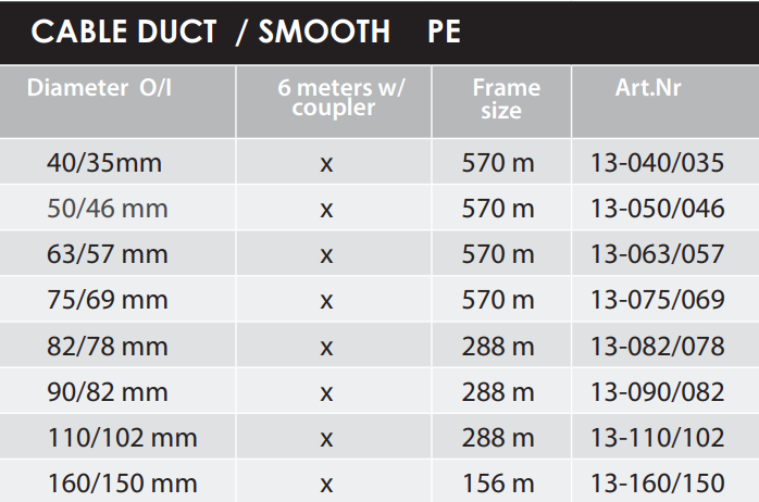 • GM smooth PEH cable pipe is a strong cablepipe, with a minimal frictional resistance when conveying a cable.
